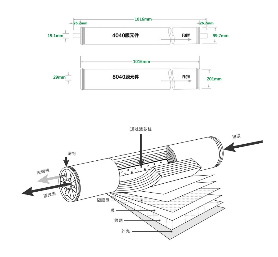 High desalination rate and water flux: The 4040 RO reverse osmosis membrane uses polyamide composite membrane material, which has a high removal rate for dissolved salts. Meanwhile, its optimized flow channel design can provide a larger water production capacity.
